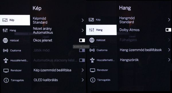 Mi a hifi hangsugárzókhoz szokott, kényesebb füllel nem igazán tudtuk élvezni az "invisible sound" természetellenes vékonyságát. Éppen ezért kellemes meglepetés volt átváltani az OLED panel és az asztali állvány közé beolvadó klang bar i soundbar hangjára. A nyolc darab, előre sugárzó hangszórót tartalmazó modul sokkal élvezhetőbbé és tisztábbá tette az emberi beszédhangot, ráadásul a zenei részleteket is kicsit élénkebben, jobb szórással jelenítette meg. Plusz a menürendszerben további beszédkiemelő funkciót is engedélyezhettünk.